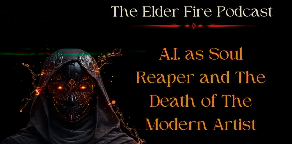 A stark meditation on A.I., artistry, and the cost of convenience. This episode of The Elder Fire Podcast explores the artist as a bearer of soul medicine and erotic inspiration, asking what is lost when creation is outsourced to machines, and why the future of art may hinge on which altar we choose to serve.